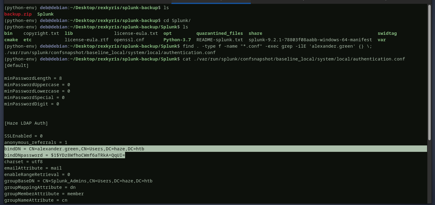 the credentials for alexanderare found inside this splunk backup