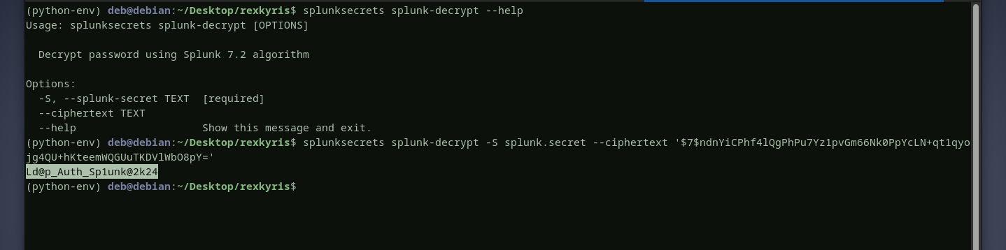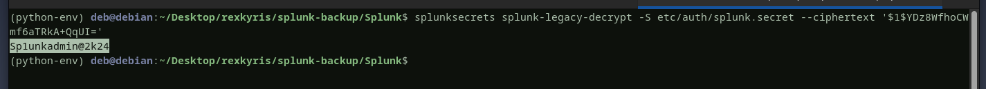 we will decryptthe password using thesplunk secretfound in thebackupjust like we did with paul.
