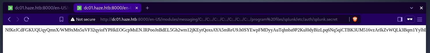 the splunk instance running on the domain controller has an lFI vulnerability, now its time to think of what files we can read from the host. why not starting with splunk’s log and configuration files. looking online, this gist contains several splunk configuration filenames.