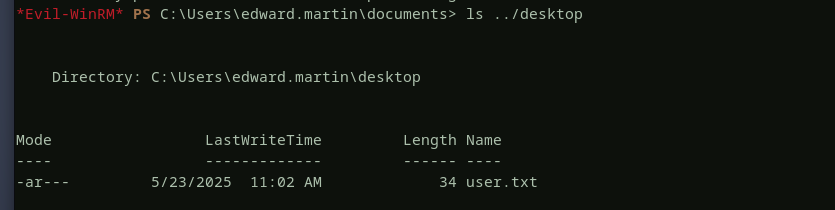 backup_reviewersandremote management usersgroups, so let’s login to the domain controller using winrm as edward and see what we can find there. the userflagis found