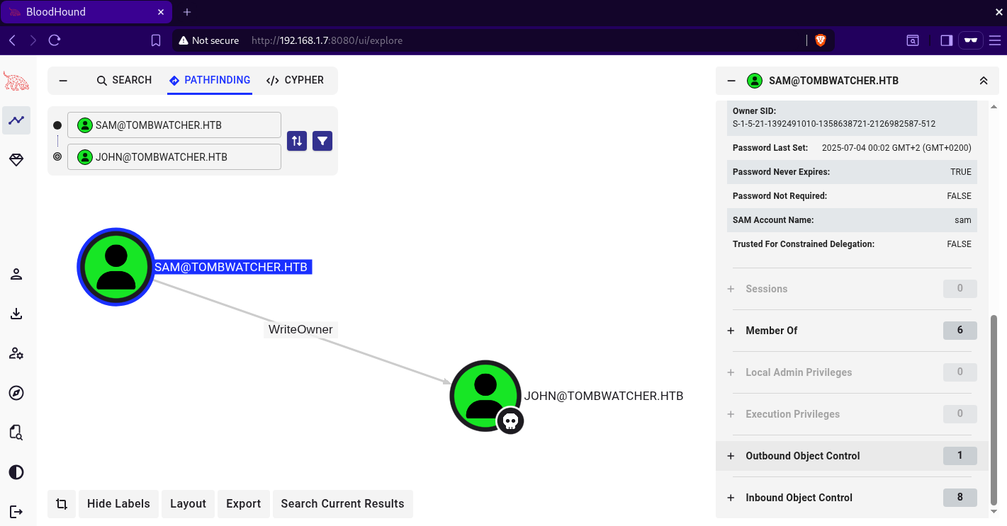 Write Owner Principals : TOMBWATCHER.HTB\Domain Admins
