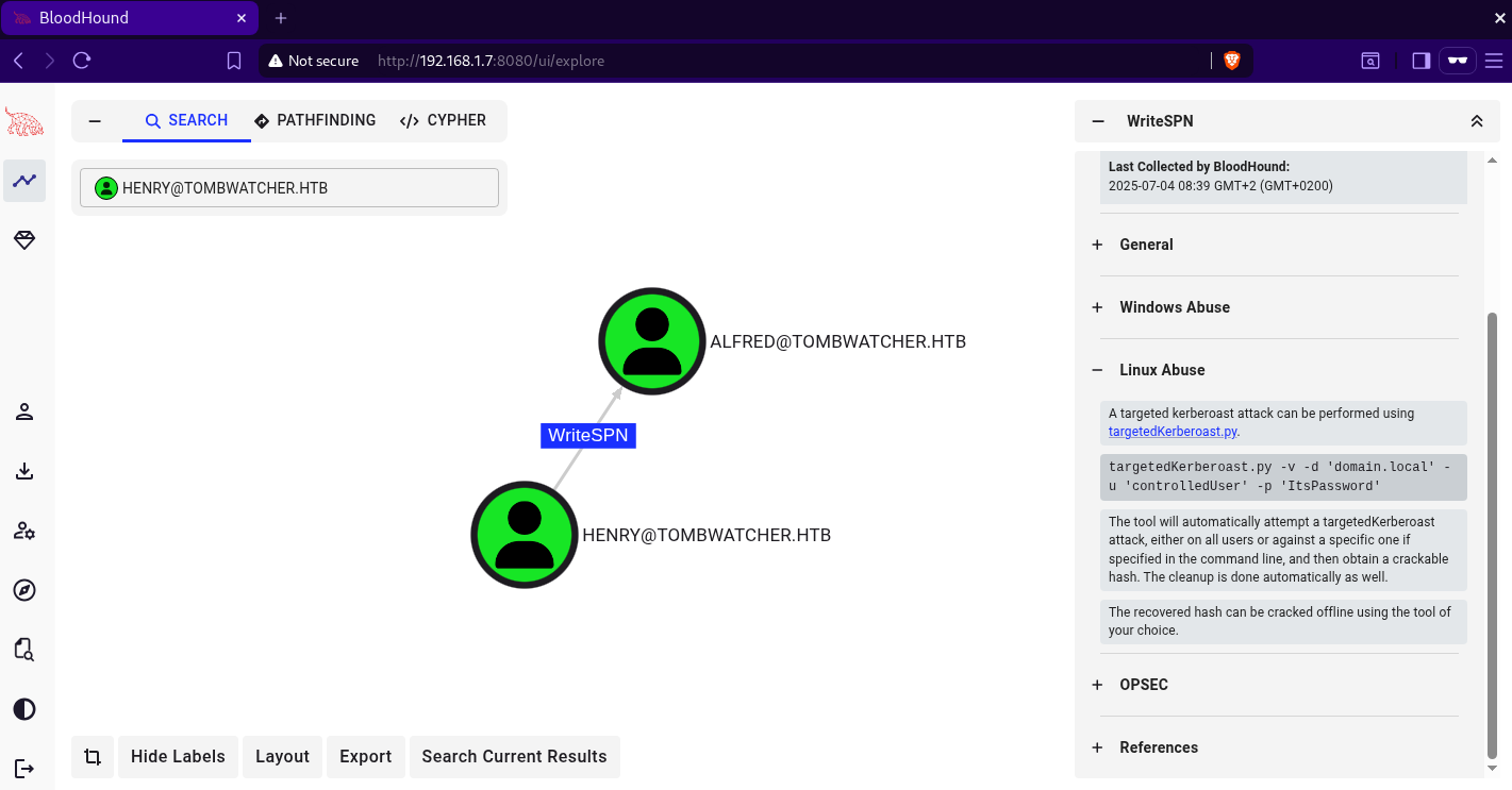 [*] Using principal: 'administrator@tombwatcher.htb'